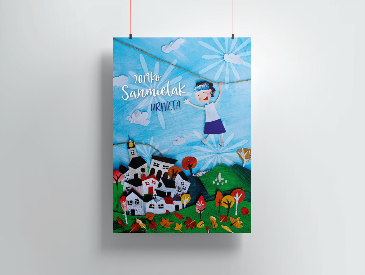 ¿Quién dijo que las ilustraciones deben hacerse necesariamente dibujando con tinta sobre papel? Sentir la textura de los distintos materiales. Cortar, equivocarse y volver a cortar. Poder mover los elementos sobre el lienzo en tiempo real. Crear texturas con pliegues, generar nuevas dimensiones con diferentes capas. Y reciclar. Reutilizar. Ilustrar va mucho más allá de coger un lápiz y ponerse a dibujar. Este cartel hecho a mano ganó el primer premio del concurso de carteles para anunciar las fiestas de Urnieta, un pequeño pueblo situado en el País Vasco.